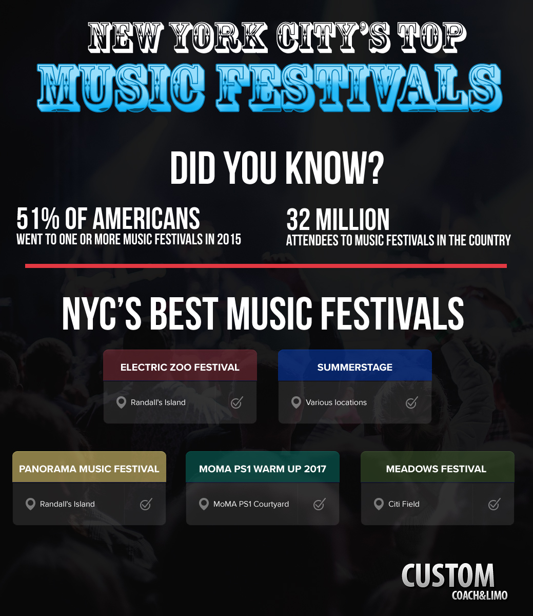 Get a mini bus rental in New York City to go to these music festivals just by calling us at +1 (866) 952-8737.